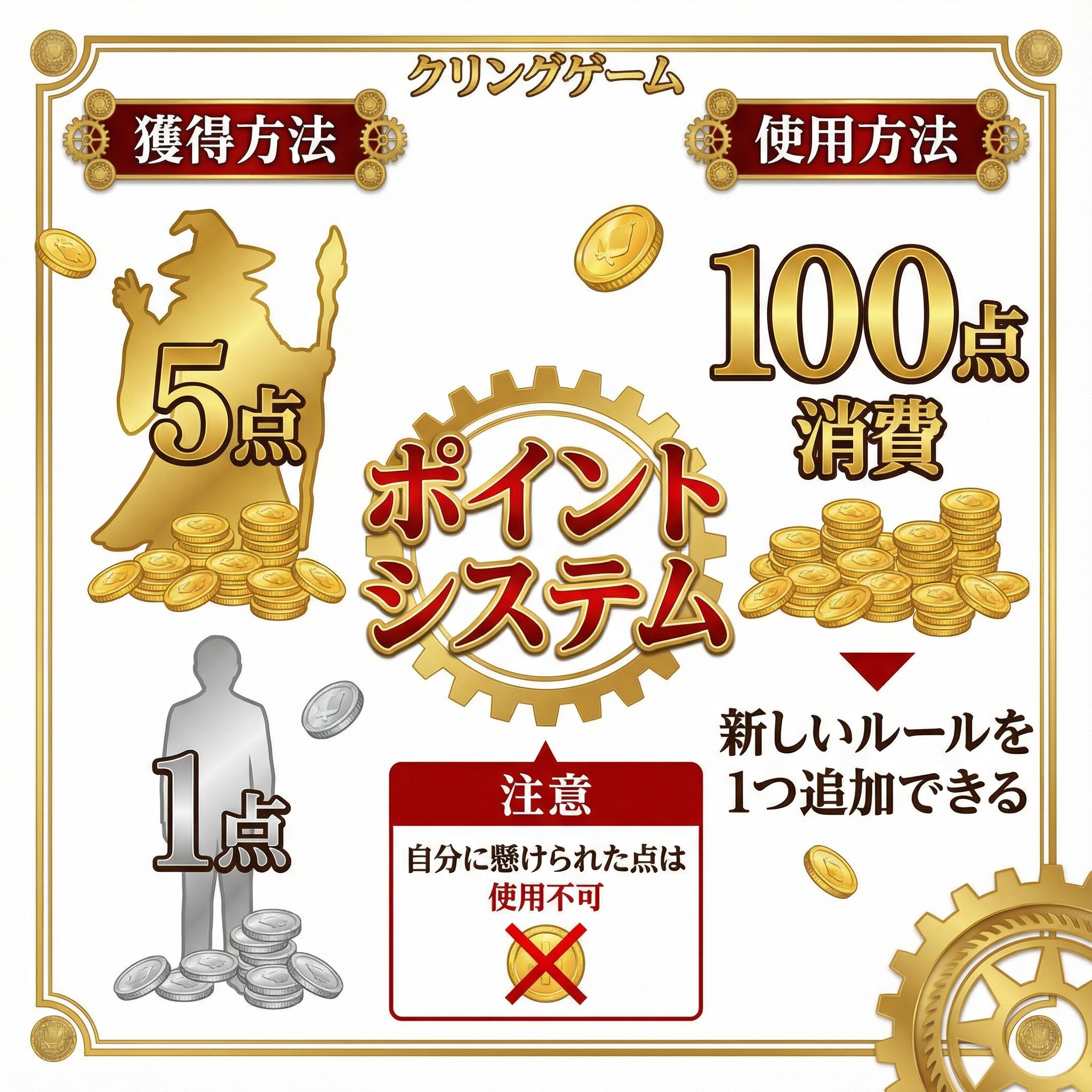 | 6 | 100ポイントを消費して、新しいルールを1つ追加できる |